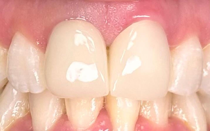 Detalle de las nuevas coronas de disilicato de litio. Observa la textura, el brillo y la integración perfecta con las encías.