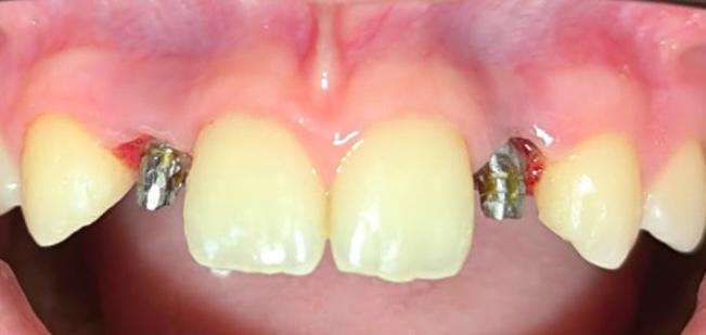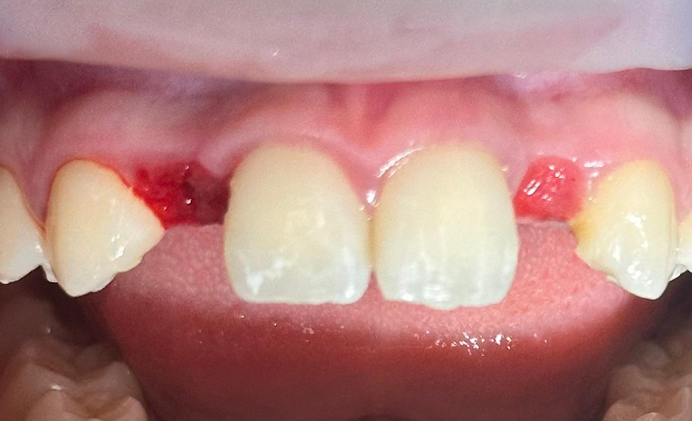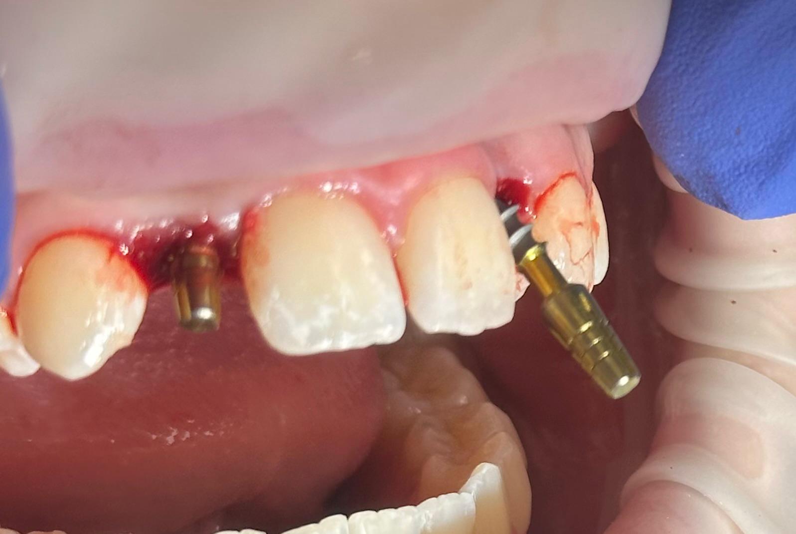 Muchos de nuestros pacientes sufren de agenesia, una condición en la que los dientes definitivos (comúnmente los laterales) nunca llegan a salir. Esto suele dejar un espacio estrecho y un hueso que, al no haber tenido nunca la raíz de un diente, es muy delgado.