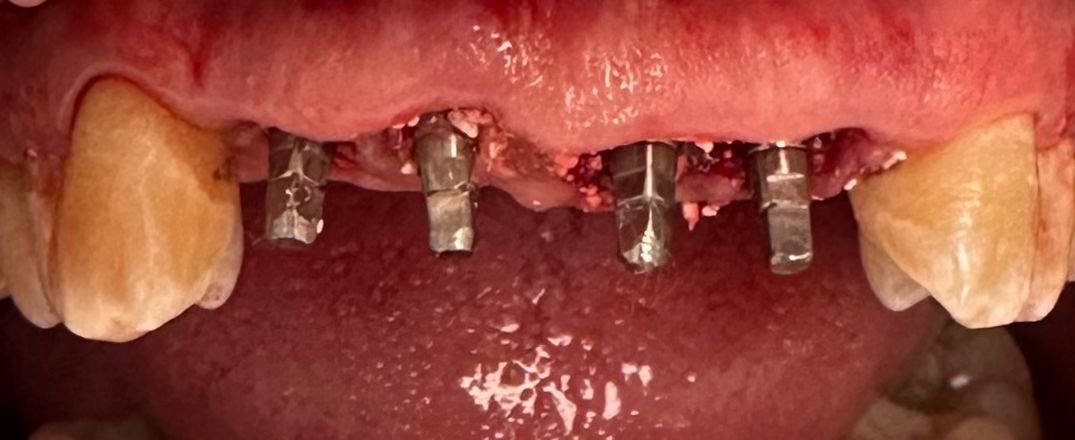 Acto quirúrgico tras las extracciones. Colocación de los cuatro implantes basales aprovechando la densidad del hueso profundo